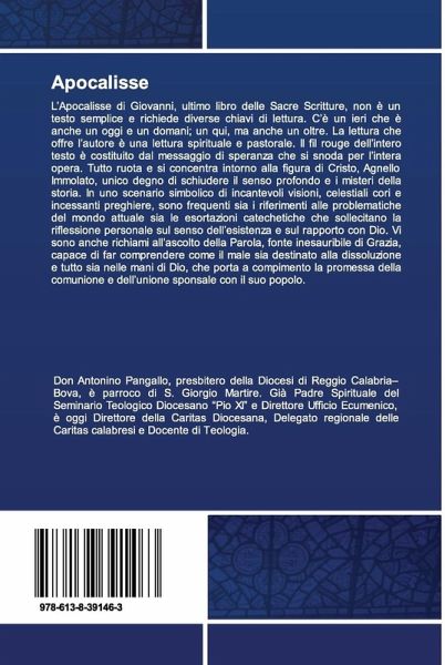 L'Apocalisse di Giovanni, ultimo libro delle Sacre Scritture, non è un testo semplice e richiede diverse chiavi di lettura. C'è un ieri che è anche un oggi e un domani; un qui, ma anche un oltre. La lettura che offre l'autore è una lettura spirituale e pastorale. Il fil rouge dell'intero testo è costituito dal messaggio di speranza che si snoda per l'intera opera. Tutto ruota e si concentra intorno alla figura di Cristo, Agnello Immolato, unico degno di schiudere il senso profondo e i misteri della storia. In uno scenario simbolico di incantevoli visioni, celestiali cori e incessanti preghiere, sono frequenti sia i riferimenti alle problematiche del mondo attuale sia le esortazioni catechetiche che sollecitano la riflessione personale sul senso dell'esistenza e sul rapporto con Dio. Vi sono anche richiami all'ascolto della Parola, fonte inesauribile di Grazia, capace di far comprendere come il male sia destinato alla dissoluzione e tutto sia nelle mani di Dio, che porta a compimento la promessa della comunione e dell'unione sponsale con il suo popolo.