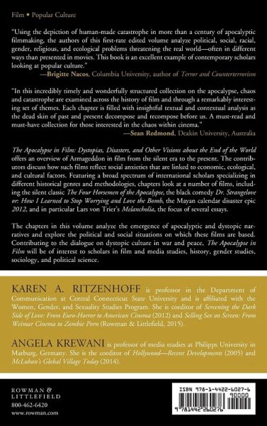 We live in a world at risk. Dire predictions about our future or the demise of planet earth persist. Even fictional representations depict narratives of decay and the end of a commonly shared social reality. Along with recurring Hollywood blockbusters that imagine the end of the world, there has been a new wave of zombie features as well as independent films that offer various visions of the future. The Apocalypse in Film: Dystopias, Disasters, and Other Visions about the End of the World offers an overview of Armageddon in film from the silent era to the present. This collection of essays discusses how such films reflect social anxieties-ones that are linked to economic, ecological, and cultural factors. Featuring a broad spectrum of international scholars specializing in different historical genres and methodologies, these essays look at a number of films, including the silent classic The Four Horsemen of the Apocalypse, the black comedy Dr. Strangelove or: How I Learned to Stop Worrying and Love the Bomb, the Mayan calendar disaster epic, 2012, and in particular, Lars Von Trier's Melancholia, the focus of several essays. As some filmmakers translate the anxiety about a changing global climate and geo-political relations into visions of the apocalypse, others articulate worries about the planet's future by depicting chemical warfare, environmental disasters, or human made destruction. This book analyzes the emergence of apocalyptic and dystopic narratives and explores the political and social situations on which these films are based. Contributing to the dialogue on dystopic culture in war and peace, The Apocalypse in Film will be of interest to scholars in film and media studies, border studies, gender studies, sociology, and political science.