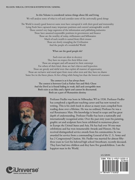 In this Volume is considered various things about life and living We will analyze some of what is evil and consider some of the universally good things The World is mostly good however some men have corrupted it with their greed and immorality Lying Fools have captured many important positions and control unimaginable wealth Those control very large segments of the information and publishing industries Those have assumed responsible positions in government and finance Those are the wealthy of today, millionaires and billionaires Much of such wealth is earned from illicit means Those are slowly strangling the Civilization And the people of a wonderful World What can the good people do? Such men are alien to decency They have no respect for their fellow man Those are arrogant and self-assured in their contempt For others of their kind, those are liar's thieves and hypocrites Those are greedy and sinful men that exploit all manner of opportunity Those are exclusive and stand apart from most other men and they have no shame Some live in the finest places, fit for a King while being less than the lowest of creatures The contest is as it has always been The contest is between God as Father Son and Holy Ghost And the Devil as is found hiding in weak, dull and corruptible men Both exist as an Idea and a Spirit and cannot be discounted. Both are a part of Humanities destiny