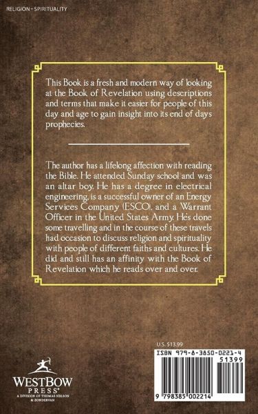 The Book is what I call a fresh and modern way of looking at the Book of Revelation using descriptions and terms that make it easier for people of this day and age to gain insight into its end of days prophecies.
