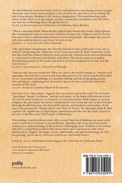 Winner of the American Sociological Association's 'Distinguished Book Award' in the Religion category.For most of us, "Apocalypse" suggests the cataclysmic end of the world. Yet in Greek "apocalypse" means "revelation," and the real subject of the Book of Revelation is how the sacred arises in history at a moment of crisis and destiny. With origins in ancient religions, the apocalyptic has been a transformative force from the time of the Crusades, through the Reformation, the French Revolution and modern communism, all the way to the present day "Islamic Jihad" and "War on Terror." In Apocalypse, John R. Hall explores the significance of apocalyptic movements and the role they have played in the rise of the West and "The Empire of Modernity."This brilliant cross-disciplinary study offers a novel basis for rethinking our social order and its ambivalent relations to sacred history. Apocalypse will attract general readers seeking new understandings of the world in challenging times. Scholars and students will find a compelling synthesis that draws them into conversation with others interested in religion, theology, culture, philosophy, and phenomenology, as well as sociology, social theory, western civilization, and world history.