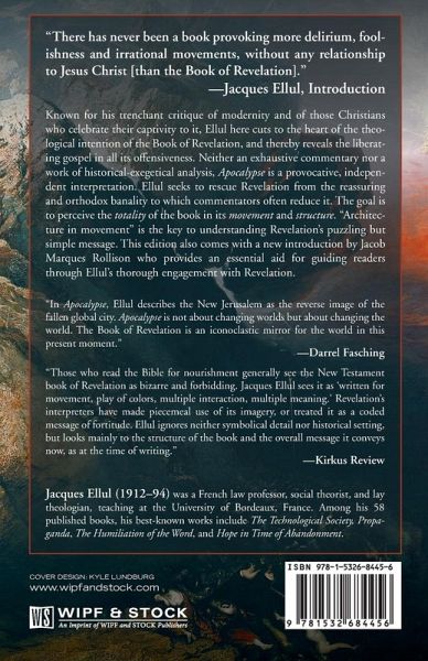 ""There has never been a book provoking more delirium, foolishness and irrational movements, without any relationship to Jesus Christ [than the Book of Revelation]."" - Jacques Ellul, Introduction Known for his trenchant critique of modernity and of those Christians who celebrate their captivity to it, Ellul here cuts to the heart of the theological intention of the Book of Revelation, and thereby reveals the liberating gospel in all its offensiveness. Neither an exhaustive commentary nor a work of historical-exegetical analysis, Apocalypse is a provocative, independent interpretation. Ellul seeks to rescue Revelation from the reassuring and orthodox banality to which commentators often reduce it. The goal is to perceive the totality of the book in its movement and structure. ""Architecture in movement"" is the key to understanding Revelation's puzzling but simple message. This edition also comes with a new foreword by Jacob Marques Rollison who provides an essential aid for guiding readers through Ellul's thorough engagement with Revelation.