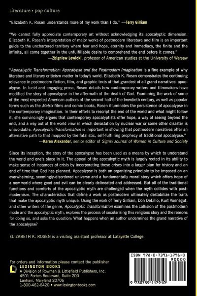 Apocalyptic Transformation explores how one the oldest sense-making paradigms, the apocalyptic myth, is altered when postmodern authors and filmmakers adopt it. It examines how postmodern writers adapt a fundamentally religious story for a secular audience and it proposes that even as these writers use the myth in traditional ways, they simultaneously undermine and criticize the grand narrative of apocalypse itself.