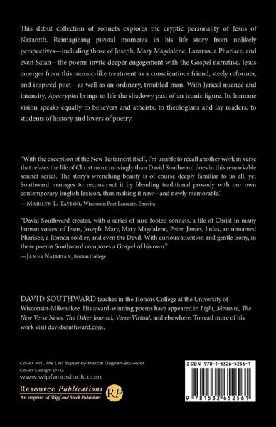 This debut collection of sonnets explores the cryptic personality of Jesus of Nazareth. Reimagining pivotal moments in his life story from unlikely perspectives--including those of Joseph, Mary Magdalene, Lazarus, a Pharisee, and even Satan--the poems invite deeper engagement with the Gospel narrative. Jesus emerges from this mosaic-like treatment as a conscientious friend, steely reformer, and inspired poet--as well as an ordinary, troubled man. With lyrical nuance and intensity, Apocrypha brings to life the shadowy past of an iconic figure. Its humane vision speaks equally to believers and atheists, to theologians and lay readers, to students of history and lovers of poetry.