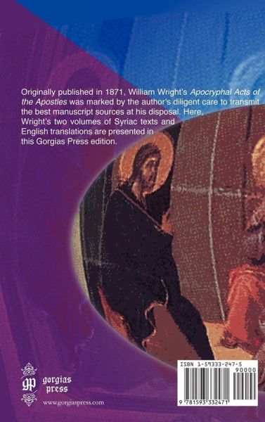 Originally published in 1871, William Wright's Apocryphal Acts of the Apostles was marked by the author's diligent care to transmit the best manuscript sources at his disposal. Here, Wright's two volumes of Syriac texts and English translations are presented in this Gorgias Press edition.