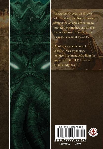 In Ancient Greece, an 18-year-old farmhand and his twin sister embark on an epic adventure to protect their mother, and all they know and love, from Hera, the vengeful queen of the gods. Apollo is a graphic novel of classic Greek mythology, uniquely re-imagined within the H.P. Lovecraft Cthulhu Mythos universe.