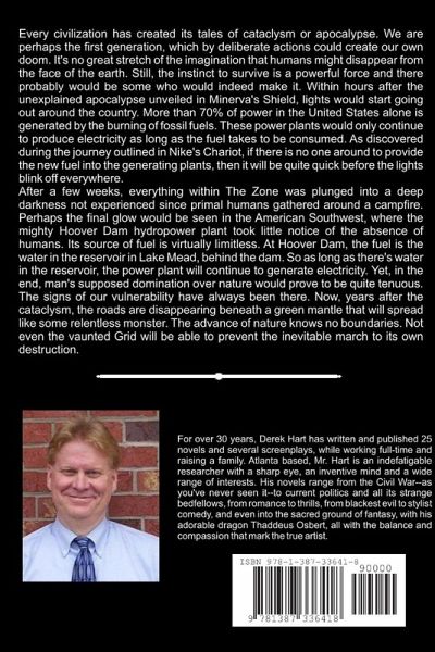Every civilization has created its tales of cataclysm or apocalypse. We are perhaps the first generation, which by deliberate actions could create our own doom. It's no great stretch of the imagination that humans might disappear from the face of the earth. Still, the instinct to survive is a powerful force and there probably would be some who would indeed make it. Within hours after the unexplained apocalypse unveiled in Minerva's Shield, lights would start going out around the country. More than 70%% of power in the United States alone is generated by the burning of fossil fuels. These power plants would only continue to produce electricity as long as the fuel takes to be consumed. As discovered during the journey outlined in Nike's Chariot, if there is no one around to provide the new fuel into the generating plants, then it will be quite quick before the lights blink off everywhere.