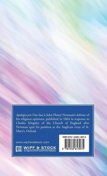 Apologia pro Vita Sua is John Henry Newman's defense of his religious opinions, published in 1864 in response to Charles Kingsley of the Church of England after Newman quit his position as the Anglican vicar of St. Mary's, Oxford.