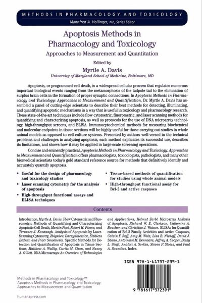 Concise and eminently practical, Apoptosis Methods in Pharmacology and Toxicology: Approaches to Measurement and Quantification offers pharmacologists, toxicologists, pathologists, and many other biomedical scientists today's gold standard reference source for methods that definitively identify and accurately quantify apoptosis.