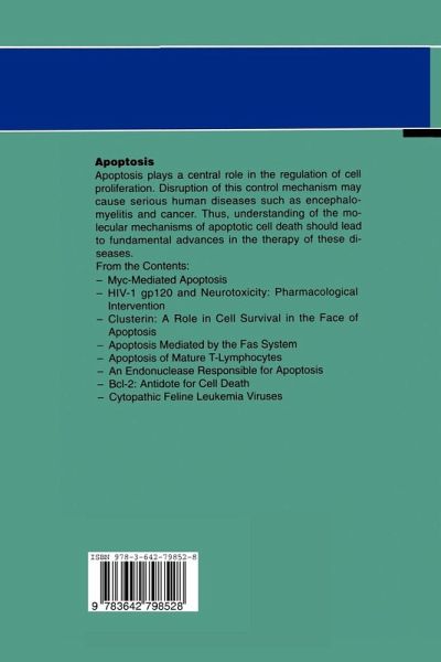 An Endonuclease Responsible for Apoptosis.- 1 Introduction.- 2 Results.- 3 Discussion.- References.- Cytopathic Feline Leukemia Viruses Cause Apoptosis in Hemolymphatic Cells.- Abstract.- 1 Introduction.- 2 Cytopathic Infections with FeLV-C in Vivo and Direct Induction of Apoptosis in T4 Cells by FeLV-C.- 3 Killing of Lymphocytes by FeLV-FAIDS/p61C and Associated Variants.- 4 FeLV-C-Related Nonregenerative Anemia: Potential Role for Apoptosis.- 5 FeLV Genes Important in Cytopathicity/Apoptosis Induction.- 6 Speculative Relationship to Endogenous Virus Recombinants and Importance Across Evolution.- 7 Regions of FeLV p15E Important in Immunosuppression.- 8 Other Types of Cytopathic Disease Seen in Viremic Cats Which Could Have an Apoptotic Basis.- 9 So How Does FeLV Cause Apoptosis?.- 10 Other Retroviruses and Animal Viruses as Potential Causes of Apoptosis.- References.- Neurotoxicity in Rat Cortical Cells Caused by N-Methyl-D-Aspartate (NMDA) and gp120 of HIV-1: Induction and Pharmacological Intervention.- Abstract.- 1 Introduction.- 2 Induction of Apoptosis in Rat Cortical Cells by HIV-1 gp120 or NMDA In Vitro.- 3 Prevention of Apoptosis in Cortical Cells In Vitro by Memantine and Flupirtine.- 4 Conclusion.- References.- Apoptosis of Mature T Lymphocytes: Putative Role in the Regulation of Cellular Immune Responses and in the Pathogenesis of HIV Infection.- Abstract.- 1 Apoptosis of Immature T Lymphocytes.- 2 Apoptosis of Mature T Lymphocytes.- 3 Apoptosis of T Lymphocytes Induced by Superantigens and Conventional Antigen.- 4 Apoptosis of Mature T Lymphocytes In Vivo and Ex Vivo.- 5 Role of T-Cell Apoptosis in HIV Pathogenesis.- 6 Concluding Remarks.- References.- bcl-2: Antidote for Cell Death.- Abstract.- 1 Introduction.- 2 Structure and Expression of the bcl-2 Gene.- 3 Biological Function of bcl-2: Apoptotic Death-Sparing Activity.- 4 Role of bcl-2 in the Immune System.- 5 Role of bcl-2 in Neuronal Tissue.- 6 Role of bcl-2 in Lymphomagenesis.- 7 Role of bcl-2 in Other Systems.- 8 Analysis of bcl-2-Deficient Mice.- 9 Subcellular Localization of bcl-2: Multiple Membrane Locations.- 10 Biochemical Function of bcl-2 Protein.- 11 bcl-2 Related Genes and bcl-2 Associated Proteins.- 12 Epilogue.- References.- Apoptosis Mediated by the Fas System.- Abstract.- 1 Introduction.- 2 Fas, a Receptor for a Death Factor.- 3 Mutation in the Fas Gene of lpr-Mice.- 4 Fas-Mediated Apoptosis.- 5 Fas Ligand, a Death Factor.- 6 Physiological Roles of the Fas System.- 7 Perspectives.- References.- Myc-Mediated Apoptosis.- Abstract.- 1 Introduction.- 2 c-Myc-Mediated Apoptosis.- 3 s-Myc-Mediated Apoptosis.- 4 Escape from Myc-Induced Apoptotic Cell Death.- 5 Conclusions.- References.- Clusterin: A Role in Cell Survival in the Face of Apoptosis?.- Abstract.- 1 Introduction.- 2 Clusterin-a Widely Expressed Multifunctional Protein.- 3 Clusterin Gene Expression in Apoptotic Epithelial Tissues.- 4 Clusterin Gene Expression in the Thymus.- 5 Clusterin Gene Expression in Retinitis Pigmentosa (RP) Retina.- 6 Clusterin Expression During Degenerative Processes in the Brain.- 7 Conclusions and Perspectives.- References.