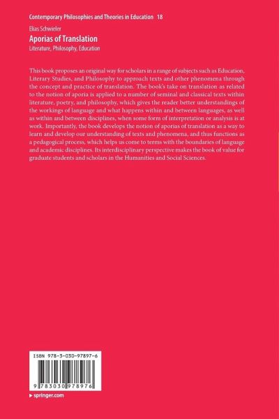 This book proposes a new way for scholars in, for example, Education, Literary Studies, and Philosophy to approach texts and other phenomena through the concept and practice of translation. Its interdisciplinary perspective makes the book of value for graduate students and scholars in the Humanities and Social Sciences. The unique take on translation as related to the notion of aporia is applied to a number of seminal and classical texts within literature, poetry, and philosophy, which gives the reader new understandings of the workings of language and what happens within and between languages, as well as within and between disciplines, when some form of interpretation or analysis is at work. Importantly, the book develops the notion of aporias of translation as a way to learn and develop our understanding of texts and phenomena, and thus functions as a pedagogical process, which helps us come to terms with the boundaries of language and academic disciplines.