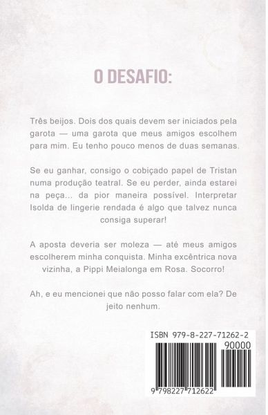 O desafio: Três beijos. Dois dos quais devem ser iniciados pela garota - uma garota que meus amigos escolhem para mim. Eu tenho pouco menos de duas semanas. Se eu ganhar, consigo o cobiçado papel de Tristan numa produção teatral. Se eu perder, ainda estarei na peça... da pior maneira possível. Interpretar Isolda de lingerie rendada é algo que talvez nunca consiga superar! A aposta deveria ser moleza - até meus amigos escolherem minha conquista. Minha excêntrica nova vizinha, a Pippi Meialonga em Rosa. Socorro! Ah, e eu mencionei que não posso falar com ela? De jeito nenhum.…mehr