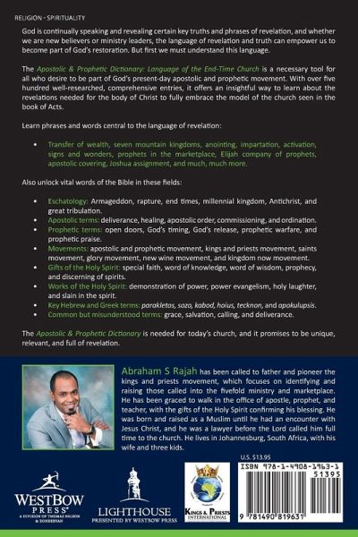 God is continually speaking and revealing certain key truths and phrases of revelation, and whether we are new believers or ministry leaders, the language of revelation and truth can empower us to become part of God's restoration. But first we must understand this language. The Apostolic & Prophetic Dictionary: Language of the End-Time Church is a necessary tool for all who desire to be part of God's present-day apostolic and prophetic movement. With over five hundred well-researched, comprehensive entries, it offers an insightful way to learn about the revelations needed for the body of Christ to fully embrace the model of the church seen in the book of Acts. Learn phrases and words central to the language of revelation: ¿ Transfer of wealth, seven mountain kingdoms, anointing, impartation, activation, signs and wonders, prophets in the marketplace, Elijah company of prophets, apostolic covering, Joshua assignment, and much, much more. Also unlock vital words of the Bible in these fields: ¿ Eschatology: Armageddon, rapture, end times, millennial kingdom, Antichrist, and great tribulation. ¿ Apostolic terms: deliverance, healing, apostolic order, commissioning, and ordination. ¿ Prophetic terms: open doors, God's timing, God's release, prophetic warfare, and prophetic praise. ¿ Movements: apostolic and prophetic movement, kings and priests movement, saints movement, glory movement, new wine movement, and kingdom now movement. ¿ Gifts of the Holy Spirit: special faith, word of knowledge, word of wisdom, prophecy, and discerning of spirits. ¿ Works of the Holy Spirit: demonstration of power, power evangelism, holy laughter, and slain in the spirit. ¿ Key Hebrew and Greek terms: parakletos, sozo, kabod, hoius, tecknon, and apokulupsis. ¿ Common but misunderstood terms: grace, salvation, calling, and deliverance. The Apostolic & Prophetic Dictionary is needed for today's church, and it promises to be unique, relevant, and full of revelation.