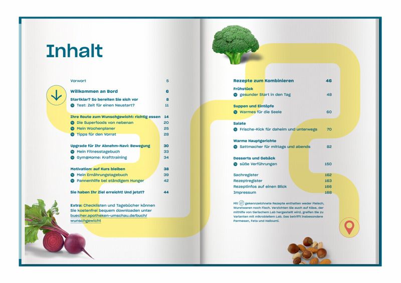Ihr Vorsatz steht fest - dieses Jahr müssen ein paar Kilos runter. Ganz gleich wie hoch Sie sich Ihr Ziel gesteckt haben, Sie brauchen jetzt einen verlässlichen Navigator durch den Abnehm-Dschungel zu Ihrem Wunschgewicht. Statt Diätwahn, Kalorienzählen und frustrierendem Jo-Jo-Effekt, starten Sie Ihre Reise zu Ihrem schlankeren Ich. Mit Checklisten, Ernährungstagebüchern, vielen Motivationshilfen und über 60 köstlichen Rezepten werden Sie Ihr Ziel - Wunschgewicht - gesund und dauerhaft erreichen.