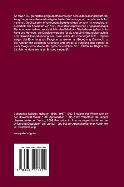 Ab etwa 1850 gründeten einige Apotheker wegen der Niederlassungsbeschränkung Drogerien mit einem breit gefächerten Warenangebot, darunter auch Arzneimittel. Die "Kaiserliche Verordnung betreffend den Verkehr mit Arzneiwaren außerhalb der Apotheke" von 1872 löste standespolitisches Engagement aus: Der Apothekerverband setzte sich für den Erhalt von Niederlassungsbeschränkung und Monopol, der Drogistenverband für die Arzneimittelhandelserlaubnis und Berufsbildanerkennung ein. Zwar verlor die inhabergeführte Drogerie wegen der Errichtung von Drogeriemarktketten an Bedeutung. Dennoch hat die Konkurrenz zwischen Apotheke und Drogerie aufgrund des Vorstoßes einer Drogeriemarktkette Rezeptsammelstellen einzurichten zu Beginn des 21. Jahrhunderts nichts an Brisanz eingebüßt.