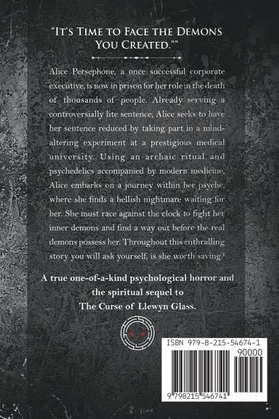 "It's Time to Face the Demons You Created." Alice Persephone, a once successful executive is now in prison for committing a heinous crime. To have her sentence reduced, she agrees to take part in a dangerous experiment at a prestigious medical university. Using a combination of modern science and an archaic ritual, the experiment goes horribly wrong and now she must race against the clock to save her life before her demons come for her, and everyone else. A true one-of-a-kind psychological horror and the spiritual sequel to "The Malediction of Llewyn Glass". For those who love Stephen King,…mehr