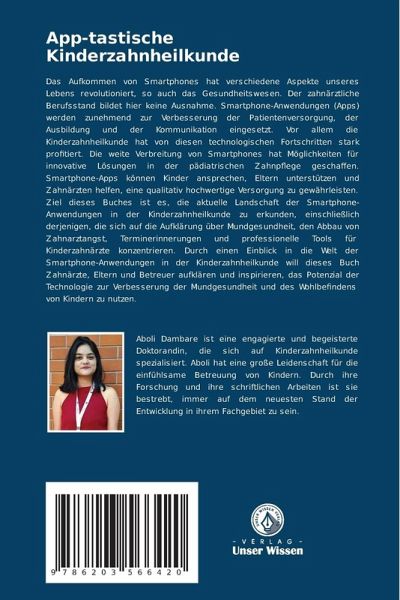 Das Aufkommen von Smartphones hat verschiedene Aspekte unseres Lebens revolutioniert, so auch das Gesundheitswesen. Der zahnärztliche Berufsstand bildet hier keine Ausnahme. Smartphone-Anwendungen (Apps) werden zunehmend zur Verbesserung der Patientenversorgung, der Ausbildung und der Kommunikation eingesetzt. Vor allem die Kinderzahnheilkunde hat von diesen technologischen Fortschritten stark profitiert. Die weite Verbreitung von Smartphones hat Möglichkeiten für innovative Lösungen in der pädiatrischen Zahnpflege geschaffen. Smartphone-Apps können Kinder ansprechen, Eltern unterstützen und Zahnärzten helfen, eine qualitativ hochwertige Versorgung zu gewährleisten. Ziel dieses Buches ist es, die aktuelle Landschaft der Smartphone-Anwendungen in der Kinderzahnheilkunde zu erkunden, einschließlich derjenigen, die sich auf die Aufklärung über Mundgesundheit, den Abbau von Zahnarztangst, Terminerinnerungen und professionelle Tools für Kinderzahnärzte konzentrieren. Durch einen Einblick in die Welt der Smartphone-Anwendungen in der Kinderzahnheilkunde will dieses Buch Zahnärzte, Eltern und Betreuer aufklären und inspirieren, das Potenzial der Technologie zur Verbesserung der Mundgesundheit und des Wohlbefindens von Kindern zu nutzen.