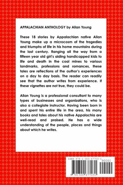 APPALACHIAN ANTHOLOGY by Allan Young These 18 stories by Appalachian native Allan Young make up a microcosm of the tragedies and triumphs of life in his home mountains during the last century. Ranging all the way from a fifteen year old girl's aiding handicapped kids to life and death in the coal mines to various landmarks, professions and romances, these tales are reflections of the author's experiences on a day to day basis. The reader can readily see that the author writes from experience. If these vignettes are not true, they could be.