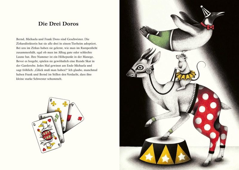 Zirkushund Puk stellt uns seine Artistenfreunde vor. Während sie in der Manege zeigen, was sie können, erfahren wir vom Leben hinter den Kulissen, jenseits des Scheinwerferlichts. Von Lampenfieber, wundersamen Ritualen und so manchem persönlichen Geheimnis, das dem gewöhnlichen Zuschauer verborgen bleibt. Mit ihrem unverwechselbaren Strich fängt Verena Lichtsinn die eigentümlichen Artisten und ihre Welt zwischen Licht und Schatten für uns ein.