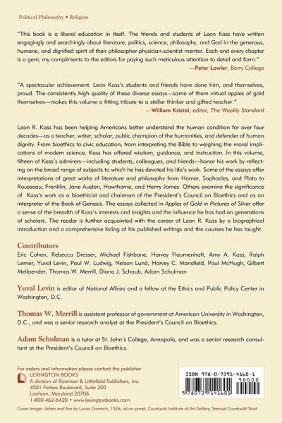 For more than forty years Leon R. Kass has been a prolific and distinguished writer, an outstanding teacher of the humanities, and a wise interpreter of the moral implications of modern science. In Apples of Gold in Pictures of Silver, fifteen of his colleagues, students, and friends celebrate his life's work with a collection of essays on themes and issues that have been of central concern to his scholarship.
