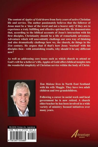 The content of Apples of Gold draws from forty years of active Christian life and service. The author passionately believes that the follower of Jesus must be a 'doer of the word and not a hearer only' if they are to experience a truly fulfilling and effective spiritual life. He demonstrates that, according to the biblical accounts of Jesus's interaction with his first disciples, Christianity should be a life of remarkable adventure. Adventure which will unavoidably challenge our own way of thinking and also dramatically challenge how we, the church, do things in the 21st century. He argues that if that's how Jesus 'worked' with his disciples then - with astonishing results, why should it be any different now?