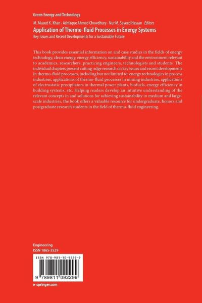This book provides essential information on and case studies in the fields of energy technology, clean energy, energy efficiency, sustainability and the environment relevant to academics, researchers, practicing engineers, technologists and students. The individual chapters present cutting-edge research on key issues and recent developments in thermo-fluid processes, including but not limited to: energy technologies in process industries, applications of thermo-fluid processes in mining industries, applications of electrostatic precipitators in thermal power plants, biofuels, energy efficiency in building systems, etc. Helping readers develop an intuitive understanding of the relevant concepts in and solutions for achieving sustainability in medium and large-scale industries, the book offers a valuable resource for undergraduate, honors and postgraduate research students in the field of thermo-fluid engineering.