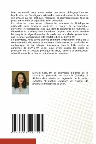Dans ce travail, nous avons réalisé une revue bibliographique sur l'application de l'intelligence artificielle dans le domaine de la santé et son impact sur les pratiques médicales et pharmaceutiques, tout en précisant les défis et enjeux liés à son utilisation.En médecine, nous avons présenté les avancées de l'intelligence artificielle dans l'imagerie médicale, y compris les échographies pelviennes et thoraciques, ainsi que dans le diagnostic de l'autisme, la dépression et la rétinopathie diabétique. De plus, nous avons examiné les progrès des algorithmes dans la prédiction de maladies graves telles que le cancer pancréatique et la mortalité liée au COVID-19.En pharmacie, nous avons analysé comment l'intelligence artificielle a révolutionné la découverte de nouveaux médicaments, en particulier les antibiotiques et les thérapies innovantes dans la lutte contre la pandémie de COVID-19. Ainsi, nous avons exposé les outils de prédiction de la structure protéique du virus, l'analyse de publications scientifiques et la recherche de traitements potentiels.