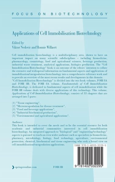 "Cell Immobilisation Biotechnology" is divided into the two book volumes, FOBI 8A and FOBI 8B. The FOBI 8A volume, Fundamentals of Cell Immobilisation Biotechnology, is dedicated to fundamental aspects of cell immobilisation while the present volume, FOBI 8B, Applications of Cell Immobilisation Biotechnology, deals with diverse applications of this technology.