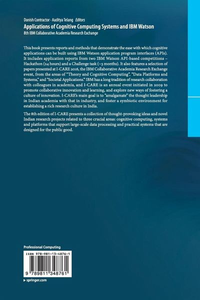 This book presents reports and methods that demonstrate the ease with which cognitive applications can be built using IBM Watson application program interfaces (APIs). It includes application reports from two IBM Watson API-based competitions - Hackathon (24 hours) and a Challenge task (~3 months). It also features a selection of papers presented at I-CARE 2016, the IBM Collaborative Academia Research Exchange event, from the areas of "Theory and Cognitive Computing", "Data Platforms and Systems," and "Societal Applications." IBM has a long tradition of research collaboration with colleagues in academia, and I-CARE is an annual event initiated in 2009 to promote collaborative innovation and learning, and explore new ways of fostering a culture of innovation. I-CARE's main goal is to "amalgamate" the thought leadership in Indian academia with that in industry, and foster a symbiotic environment for establishing a rich research culture in India.