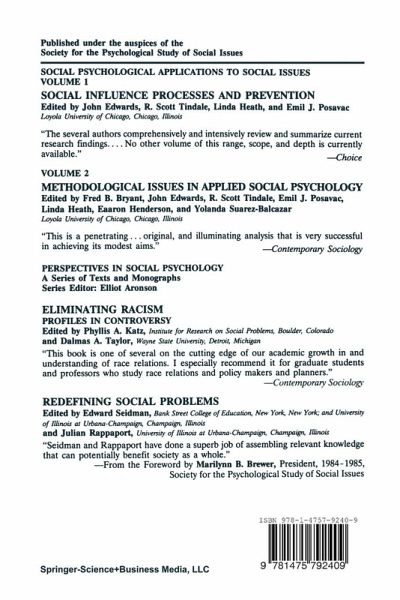 Herausgegeben:Heath, Linda; Tindale, R. Scott; Edwards, John; Posavac, Emil J.; Bryant, Fred B.; Henderson-King, Eaaron; Suarez-Balcazar, Yolanda; Myers, Judith