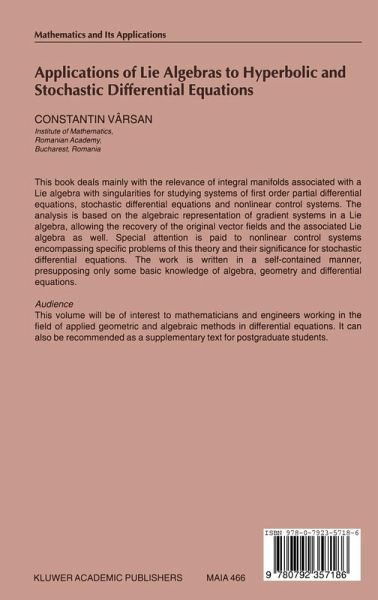 The main part of the book is based on a one semester graduate course for students in mathematics. I have attempted to develop the theory of hyperbolic systems of differen tial equations in a systematic way, making as much use as possible ofgradient systems and their algebraic representation. However, despite the strong sim ilarities between the development of ideas here and that found in a Lie alge bras course this is not a book on Lie algebras. The order of presentation has been determined mainly by taking into account that algebraic representation and homomorphism correspondence with a full rank Lie algebra are the basic tools which require a detailed presentation. I am aware that the inclusion of the material on algebraic and homomorphism correspondence with a full rank Lie algebra is not standard in courses on the application of Lie algebras to hyperbolic equations. I think it should be. Moreover, the Lie algebraic structure plays an important role in integral representation for solutions of nonlinear control systems and stochastic differential equations yelding results that look quite different in their original setting. Finite-dimensional nonlin ear filters for stochastic differential equations and, say, decomposability of a nonlinear control system receive a common understanding in this framework.