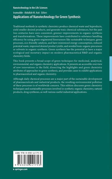 Traditional methods in synthetic chemistry produce chemical waste and byproducts, yield smaller desired products, and generate toxic chemical substances, but the past two centuries have seen consistent, greener improvements in organic synthesis and transformations. These improvements have contributed to substance handling efficiency by using green-engineered forerunners like sustainable techniques, green processes, eco-friendly catalysis, and have minimized energy consumption, reduced potential waste, improved desired product yields, and avoided toxic organic precursors or solvents in organic synthesis. Green synthesis has the potential to have a major ecological and monetary impact on modern pharmaceutical R&D and organic chemistry fields. This book presents a broad scope of green techniques for medicinal, analytical, environmental, and organic chemistry applications. It presents an accessible overview of new innovations in the field, dissecting the highlights and green chemistry attributes of approaches to green synthesis, and provides cases to exhibit applications to pharmaceutical and organic chemistry.