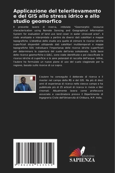 Il presente lavoro di ricerca, intitolato "Geomorphic resource characterisation using Remote Sensing and Geographical Information System for evaluation of land use land cover in water stressed area", è stato analizzato e interpretato a partire da diversi dati satellitari e mappe topografiche. L'obiettivo dello studio era quello di stimare le risorse idriche superficiali disponibili utilizzando dati satellitari multitemporali e mappe topografiche SOI; individuare l'importanza delle risorse idriche superficiali per determinare la copertura del suolo dell'area selezionata. Sulla base delle risorse geomorfiche e LULC, sono state identificate e poi classificate le risorse idriche di superficie e le zone potenziali di raccolta dell'acqua. Infine, l'autore ha formulato un nuovo piano di uso del suolo stagionale per la regione, basato sulle risorse di cui sopra.