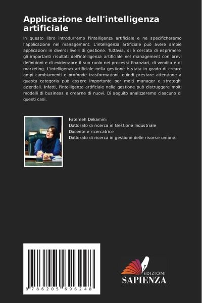 In questo libro introdurremo l'intelligenza artificiale e ne specificheremo l'applicazione nel management. L'intelligenza artificiale può avere ampie applicazioni in diversi livelli di gestione. Tuttavia, si è cercato di esprimere gli importanti risultati dell'intelligenza artificiale nel management con brevi definizioni e di evidenziare il suo ruolo nei processi finanziari, di vendita e di marketing. L'intelligenza artificiale nella gestione è stata in grado di creare ampi cambiamenti e profonde trasformazioni, quindi prestare attenzione a questa categoria può essere importante per molti manager e strateghi aziendali. Infatti, l'intelligenza artificiale nella gestione può distruggere molti modelli di business e crearne di nuovi. Di seguito analizzeremo ciascuno di questi casi.