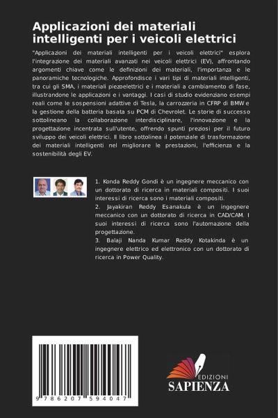 "Applicazioni dei materiali intelligenti per i veicoli elettrici" esplora l'integrazione dei materiali avanzati nei veicoli elettrici (EV), affrontando argomenti chiave come le definizioni dei materiali, l'importanza e le panoramiche tecnologiche. Approfondisce i vari tipi di materiali intelligenti, tra cui gli SMA, i materiali piezoelettrici e i materiali a cambiamento di fase, illustrandone le applicazioni e i vantaggi. I casi di studio evidenziano esempi reali come le sospensioni adattive di Tesla, la carrozzeria in CFRP di BMW e la gestione della batteria basata su PCM di Chevrolet. Le storie di successo sottolineano la collaborazione interdisciplinare, l'innovazione e la progettazione incentrata sull'utente, offrendo spunti preziosi per il futuro sviluppo dei veicoli elettrici. Il libro sottolinea il potenziale di trasformazione dei materiali intelligenti nel migliorare le prestazioni, l'efficienza e la sostenibilità degli EV.