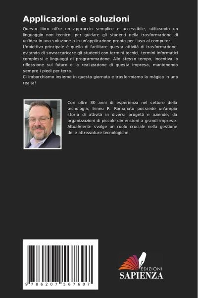 Questo libro offre un approccio semplice e accessibile, utilizzando un linguaggio non tecnico, per guidare gli studenti nella trasformazione di un'idea in una soluzione o in un'applicazione pronta per l'uso al computer.L'obiettivo principale è quello di facilitare questa attività di trasformazione, evitando di sovraccaricare gli studenti con termini tecnici, termini informatici complessi e linguaggi di programmazione. Allo stesso tempo, incentiva la riflessione sul futuro e la realizzazione di questa impresa, mantenendo sempre i piedi per terra.Ci imbarchiamo insieme in questa giornata e trasformiamo la mágica in una realtà!