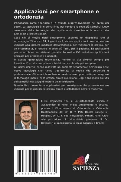 L'ortodonzia come specialità si è evoluta progressivamente nel corso dei secoli. La tecnologia è in prima linea per rendere le cose più semplici. L'uso crescente della tecnologia sta rapidamente cambiando la nostra vita personale e professionale.Cosa c'è di meglio degli smartphone, essendo un dispositivo che ci accompagna 24 ore su 24, 7 giorni su 7, alcune applicazioni possono essere utilizzate oggi nell'era moderna dell'ortodonzia, per migliorare la pratica, per un ortodontista, e rendere le cose più facili, per il paziente. Le applicazioni per smartphone sui sistemi operativi Android e IOS includono applicazioni dedicate per ortodontisti e pazienti.In questa generazione tecnologica, mentre la vita diventa sempre più frenetica, l'uso di smartphone e tablet ha reso la vita più semplice.Gli ultimi decenni hanno mostrato un aumento fenomenale nell'utilizzo delle nuove tecnologie che hanno trasformato la nostra vita personale e professionale. Gli smartphone hanno creato nuove opportunità per integrare la tecnologia mobile nella pratica clinica quotidiana. Oggi sono molto più utili dei semplici messaggi di testo o delle telefonate.Questo libro presenta le applicazioni per smartphone che possono essere utilizzate per migliorare la pratica clinica e ortodontica nell'era moderna.
