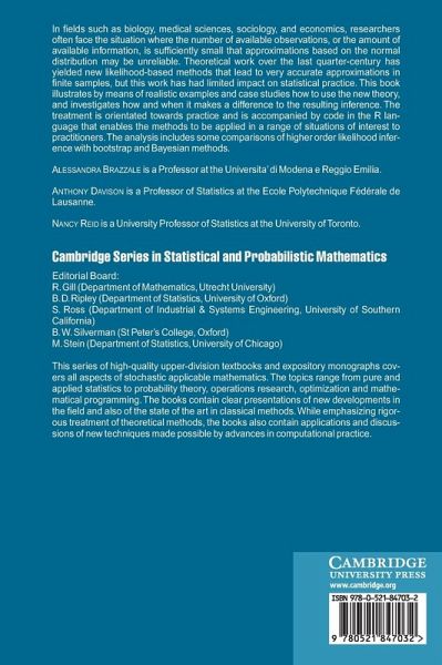 In fields such as biology, medical sciences, sociology, and economics researchers often face the situation where the number of available observations, or the amount of available information, is sufficiently small that approximations based on the normal distribution may be unreliable. Theoretical work over the last quarter-century has led to new likelihood-based methods that lead to very accurate approximations in finite samples, but this work has had limited impact on statistical practice. This book illustrates by means of realistic examples and case studies how to use the new theory, and investigates how and when it makes a difference to the resulting inference. The treatment is oriented towards practice and comes with code in the R language (available from the web) which enables the methods to be applied in a range of situations of interest to practitioners. The analysis includes some comparisons of higher order likelihood inference with bootstrap or Bayesian methods.