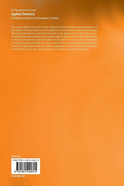 The second edition of Gesser's classic Applied Chemistry includes updated versions of the original 16 chapters plus two new chapters on semiconductors and nanotechnology. This textbook introduces chemistry students to the applications of their field to engineering design and function across a wide range of subjects, from fuels and polymers to electrochemistry and water treatment. Each chapter concludes with a reading list of relevant books and articles as well as a set of exercises which include problems that extend the topics beyond the text. Other supplements to the text include a laboratory section with step-by-step experiments and a solutions manual for instructors.