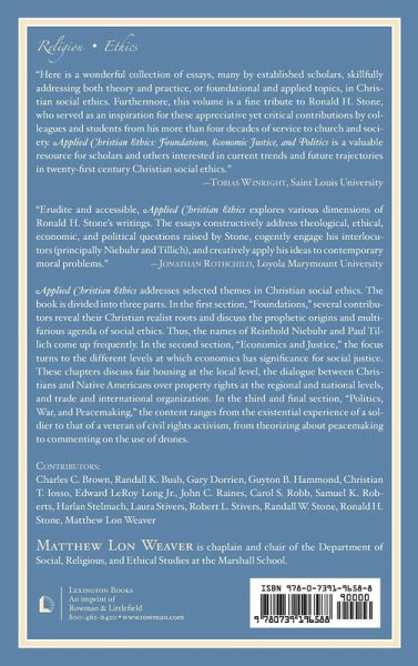 Applied Christian Ethics addresses selected themes in Christian social ethics. Part one shows the roots of contributors in the realist school; part two focuses on different levels of the significance of economics for social justice; and part three deals with both existential experience and government policy in war and peace issues.
