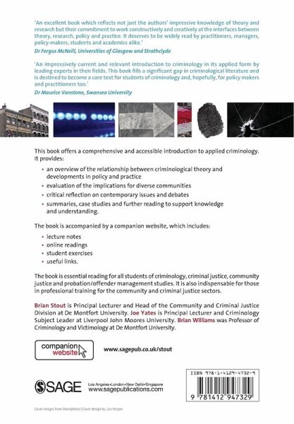 This is the first book to cover comprehensively and accessibly the area of applied criminology. It draws together leading experts with experience of teaching, research and practice. Each chapter engages with the application of criminology in a particular area of the community and criminal justice system, and offers: * An overview of the relationship between criminological theory and policy and practice developments. * Critical reflection on whether criminology has been meaningfully engaged - paying particular attention to the contemporary issues and debates. * Evaluation of the implications for diverse communities, paying particular attention to discrimination and oppression and criminal justice values. * Summaries, case studies and further reading to support knowledge and understanding. The book is accompanied by a to enhance the learning experience. This includes: * Lecture notes * Online readings * Student exercises * Case studies * Useful links