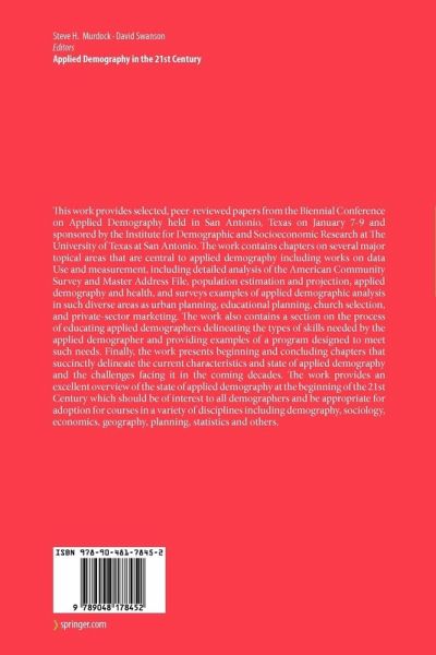 This book derived from the 1st post-2000 national conference on Applied Demography, to be held in San Antonio, Texas January 7-9, 2007 under the sponsorship of the Institute for Demographic and Socioeconomic Research at The University of Texas at San Antonio, provides a unique opportunity to obtain an overview of the current state of applied demography. The work will provide a cross-sectional view of Applied Demography and an evaluation of its likely future.