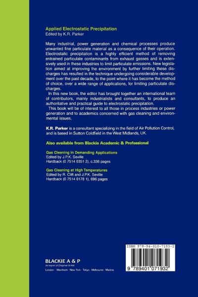 Many industrial, power generation and chemical processes produce unwanted fine particulate material as a consequence of their operation. Electrostatic precipitation is a highly efficient method of removing entrained particulate contaminants from exhaust gases and is extensively used in these industries to limit particulate emissions. New legislation aimed at improving the environment by further limiting these discharges has resulted in the technique undergoing considerable development over the past decade, to the point where it has become the method of choice, over a wide range of applications, for limiting particulate discharges. In this new book, the editor has brought together an international team of contributors, mainly industrialists and consultants, to produce an authorative and practical guide to electrostatic precipitation. This book is of interest to all those in process industries or power generation and to academics concerned with gas cleaning and environmental issues.