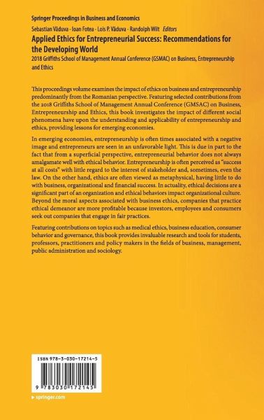 This proceedings volume examines the impact of ethics on business and entrepreneurship predominantly from the Romanian perspective. Featuring selected contributions from the 2018 Griffiths School of Management Annual Conference (GMSAC) on Business, Entrepreneurship and Ethics, this book investigates the impact of different social phenomena have upon the understanding and applicability of entrepreneurship and ethics, providing lessons for emerging economies. In emerging economies, entrepreneurship is often times associated with a negative image and entrepreneurs are seen in an unfavorable light. This is due in part to the fact that from a superficial perspective, entrepreneurial behavior does not always amalgamate well with ethical behavior. Entrepreneurship is often perceived as "success at all costs" with little regard to the interest of stakeholder and, sometimes, even the law. On the other hand, ethics are often viewed as metaphysical, having little to do with business, organizational and financial success. In actuality, ethical decisions are a significant part of an organization and ethical behaviors impact organizational culture. Beyond the moral aspects associated with business ethics, companies that practice ethical demeanor are more profitable because investors, employees and consumers seek out companies that engage in fair practices.