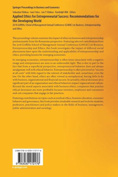 This proceedings volume examines the impact of ethics on business and entrepreneurship predominantly from the Romanian perspective. Featuring selected contributions from the 2018 Griffiths School of Management Annual Conference (GMSAC) on Business, Entrepreneurship and Ethics, this book investigates the impact of different social phenomena have upon the understanding and applicability of entrepreneurship and ethics, providing lessons for emerging economies. In emerging economies, entrepreneurship is often times associated with a negative image and entrepreneurs are seen in an unfavorable light. This is due in part to the fact that from a superficial perspective, entrepreneurial behavior does not always amalgamate well with ethical behavior. Entrepreneurship is often perceived as "success at all costs" with little regard to the interest of stakeholder and, sometimes, even the law. On the other hand, ethics are often viewed as metaphysical, having little to do with business, organizational and financial success. In actuality, ethical decisions are a significant part of an organization and ethical behaviors impact organizational culture. Beyond the moral aspects associated with business ethics, companies that practice ethical demeanor are more profitable because investors, employees and consumers seek out companies that engage in fair practices.