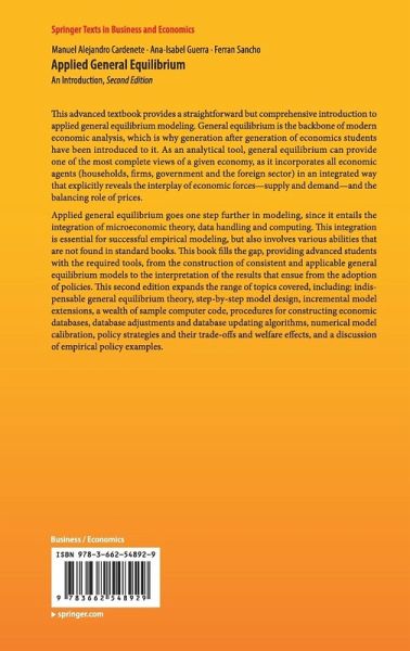 This advanced textbook provides a straightforward but comprehensive introduction to applied general equilibrium modeling. General equilibrium is the backbone of modern economic analysis, which is why generation after generation of economics students have been introduced to it. As an analytical tool, general equilibrium can provide one of the most complete views of a given economy, as it incorporates all economic agents (households, firms, government and the foreign sector) in an integrated way that explicitly reveals the interplay of economic forces-supply and demand-and the balancing role of prices. Applied general equilibrium goes one step further in modeling, since it entails the integration of microeconomic theory, data handling and computing. This integration is essential for successful empirical modeling, but also involves various abilities that are not found in standard books. This book fills the gap, providing advanced students with the required tools,from the construction of consistent and applicable general equilibrium models to the interpretation of the results that ensue from the adoption of policies. This second edition expands the range of topics covered, including: indispensable general equilibrium theory, step-by-step model design, incremental model extensions, a wealth of sample computer code, procedures for constructing economic databases, database adjustments and database updating algorithms, numerical model calibration, policy strategies and their trade-offs and welfare effects, and a discussion of empirical policy examples.