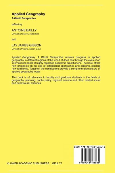 History and epistemological foundations.- Managing geography after Y2K.- The principles and practice of applied geography.- Historical foundations of applied geography.- Political geography, public policy and the rise of policy analysis.- The role of geographic information science in applied geography.- Economic base theory and applied geography.- Retail location and consumer spatial choice behavior.- A world perspective.- Applied geography in Western and Southern Europe.- Applied geography in Central Europe.- Applied geography in 20th century North America: A perspective.- Case studies.- Disability, disadvantage, and discrimination: An overview with special emphasis on blindness in the USA.- Human wayfinding.- International trade.- Medicometry and Regional Devlopment.- Monitoring and benchmarking regional and local performance.- Applied geography for the future.- Biographies and fields.