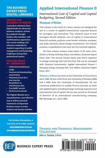 This volume is the second of a three-volume set designed for use in a course in applied international corporate ¿nance for managers and executives. This volume's issue is how uncertain foreign exchange (FX) rate changes affect a ¿rm's ongoing cash ¿ows and equity value, and what can be done in terms of hedging this risk using financial instruments. The accounting implications are also considered. Numerous examples of real-world companies are used. The volume contains a hypothetical case that ties the material together. The first volume reviews some basics of FX rates: Introduction to Foreign Exchange Rates, 2nd edition, Business Expert Press, 2016. The third volume deals with the estimation of the cost of capital for international operations and the evaluation of overseas investment proposals: Applied International Finance II: International Cost of Capital and Capital Budgeting, 2nd edition, Business Expert Press, 2017.