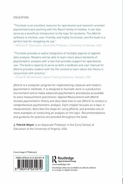 jMetrik is a computer program for implementing classical and modern psychometric methods. It is designed to facilitate work in a production environment and to make advanced psychometric procedures accessible to every measurement practitioner. Applied Measurement with jMetrik reviews psychometric theory and describes how to use jMetrik to conduct a comprehensive psychometric analysis. Each chapter focuses on a topic in measurement, describes the steps for using jMetrik, and provides one or more examples of conducting an analysis on the topic. Recommendations and guidance for practice is provided throughout the book.