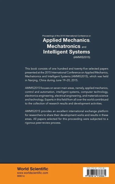 This book consists of one hundred and twenty-five selected papers presented at the 2015 International Conference on Applied Mechanics, Mechatronics and Intelligent System (AMMIS2015), which was held in Nanjing, China during June 1920, 2015. AMMIS2015 focuses on seven main areas, namely, applied mechanics, control and automation, intelligent systems, computer technology, electronics engineering, electrical engineering, and materials science and technology. Experts in this field from all over the world contributed to the collection of research results and development activities. AMMIS2015 provides an excellent international exchange platform for researchers to share their development works and results in these areas. All papers selected for this proceeding were subjected to a rigorous peer-review process.